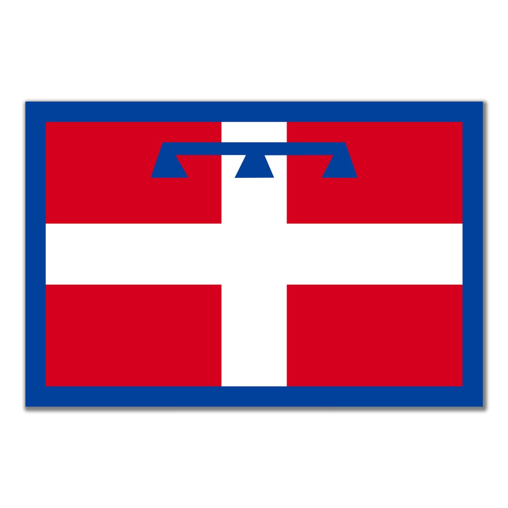 Bandiera Piemonte 100x150 cm in tessuto poliestere nautico 120 gr/mq ad alta tenacità nei tessuti e nei colori con doppie cuciture perimetrali a rinforzo e cordino ad alta resistenza per l'ancoraggio all'asta.