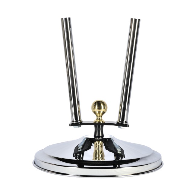 Base in ottone cromato diametro 315 mm a 2 sedi per asta da interno di diametro 22 mm.