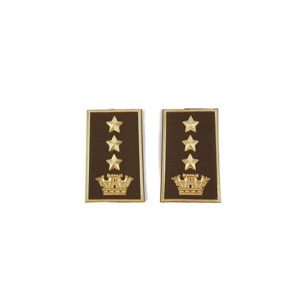 Coppia di gradi tubolari kaki da Colonnello dell'Esercito. Realizzati in plastica con grado termosaldato.